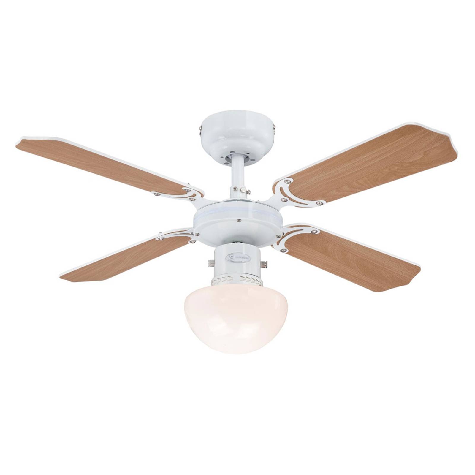 Westinghouse Ventilátor se světlem Flora Royale, Obývací pokoj / jídelna, kov, dřevo, sklo, E27, 60W, K: 38cm