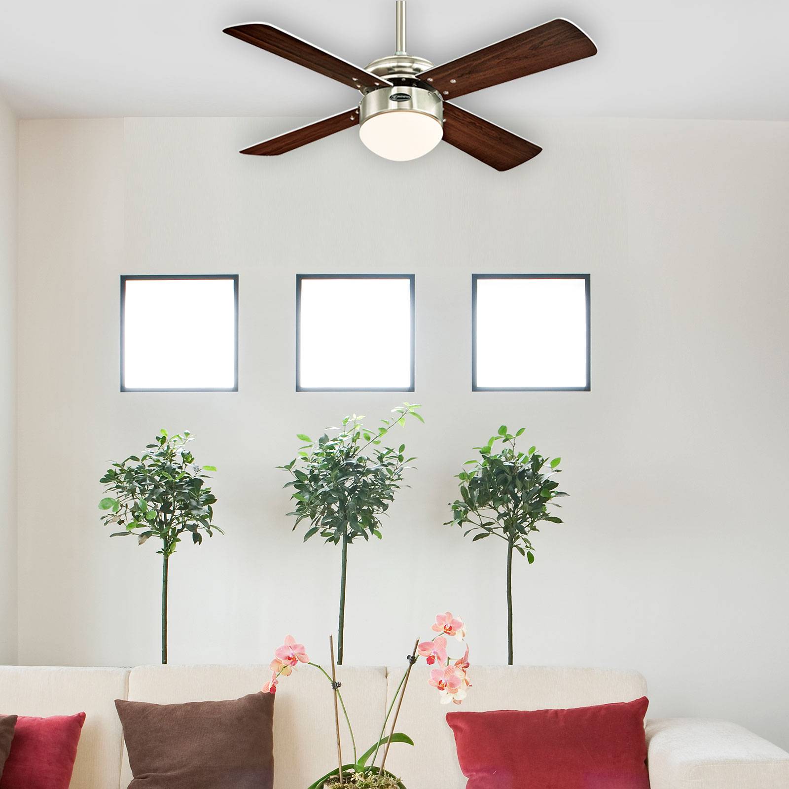 Westinghouse Stropní ventilátor Morris se světlem LED, Obývací pokoj / jídelna, Vícevrstvá překližka, železo, sklo, 17W, K: 38.6cm