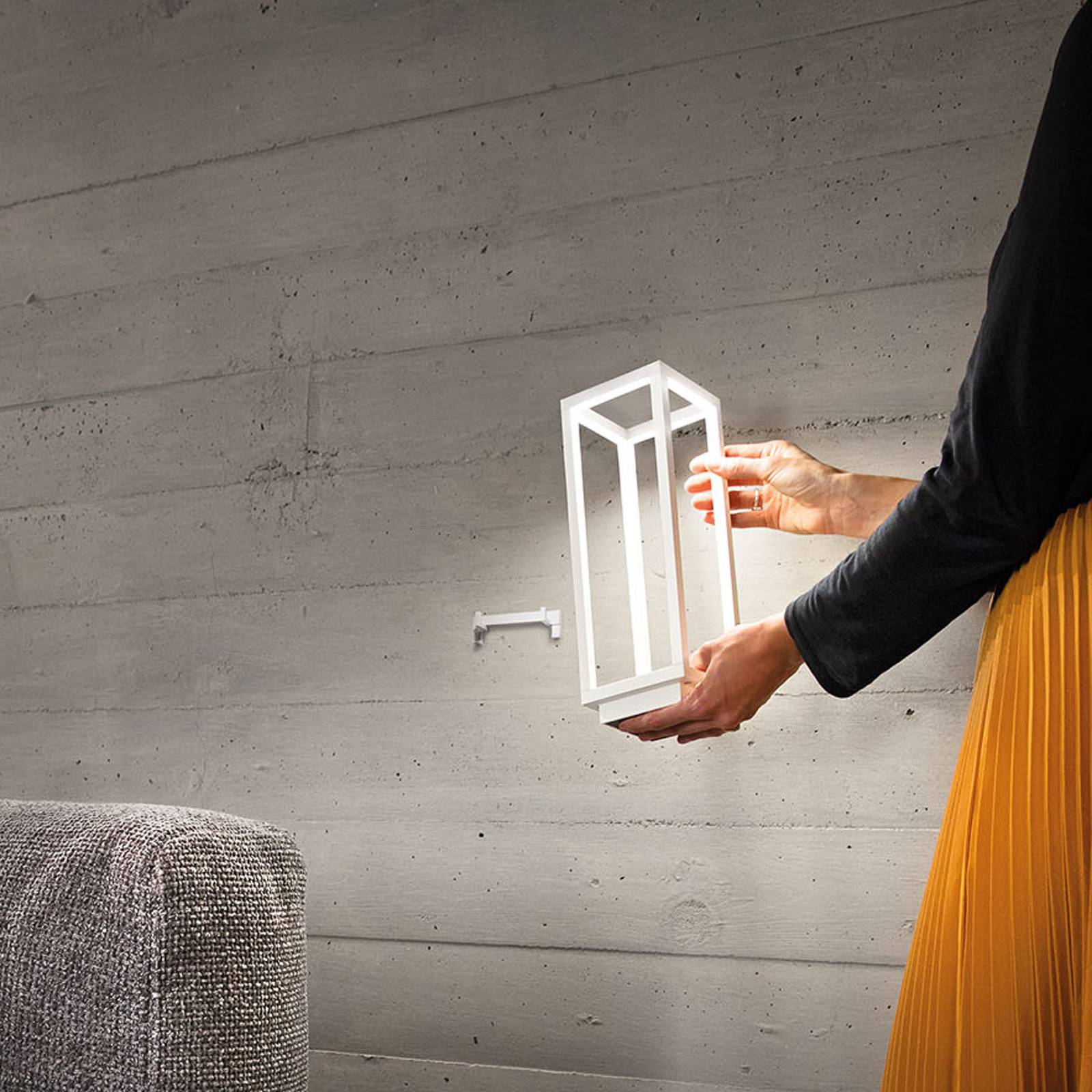 Zafferano Home LED lucerna na baterii IP54 bílá, Obývací pokoj / jídelna, hliník, polykarbonát, 2.2W, P: 10 cm, L: 10 cm, K: 29.4cm
