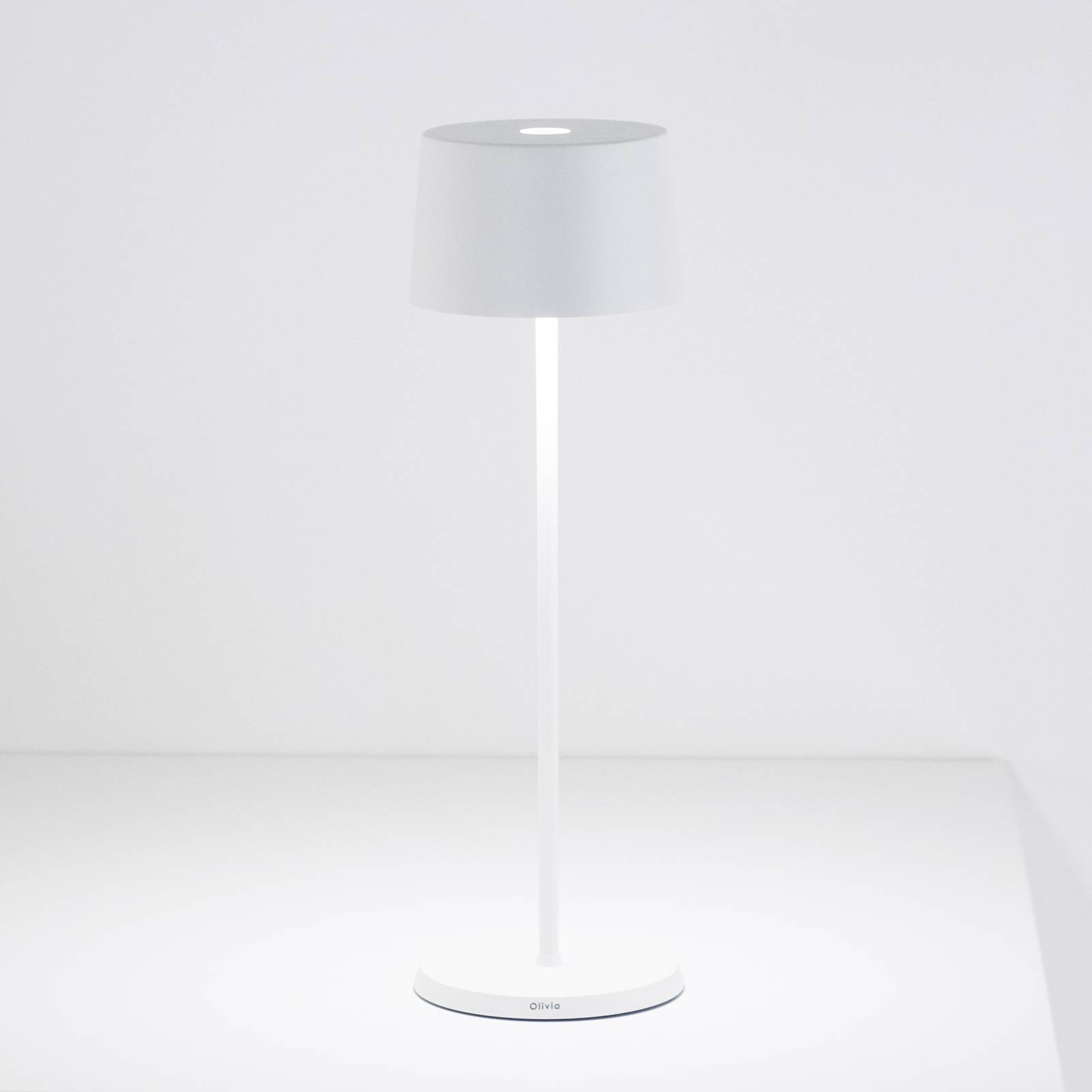Zafferano Olivia 3K dobíjecí stolní lampa IP65 bílá, Obývací pokoj / jídelna, Hliník, polykarbonátový hranol, 2W, K: 35cm