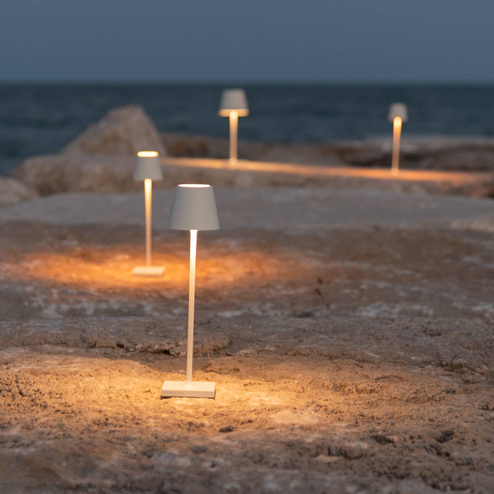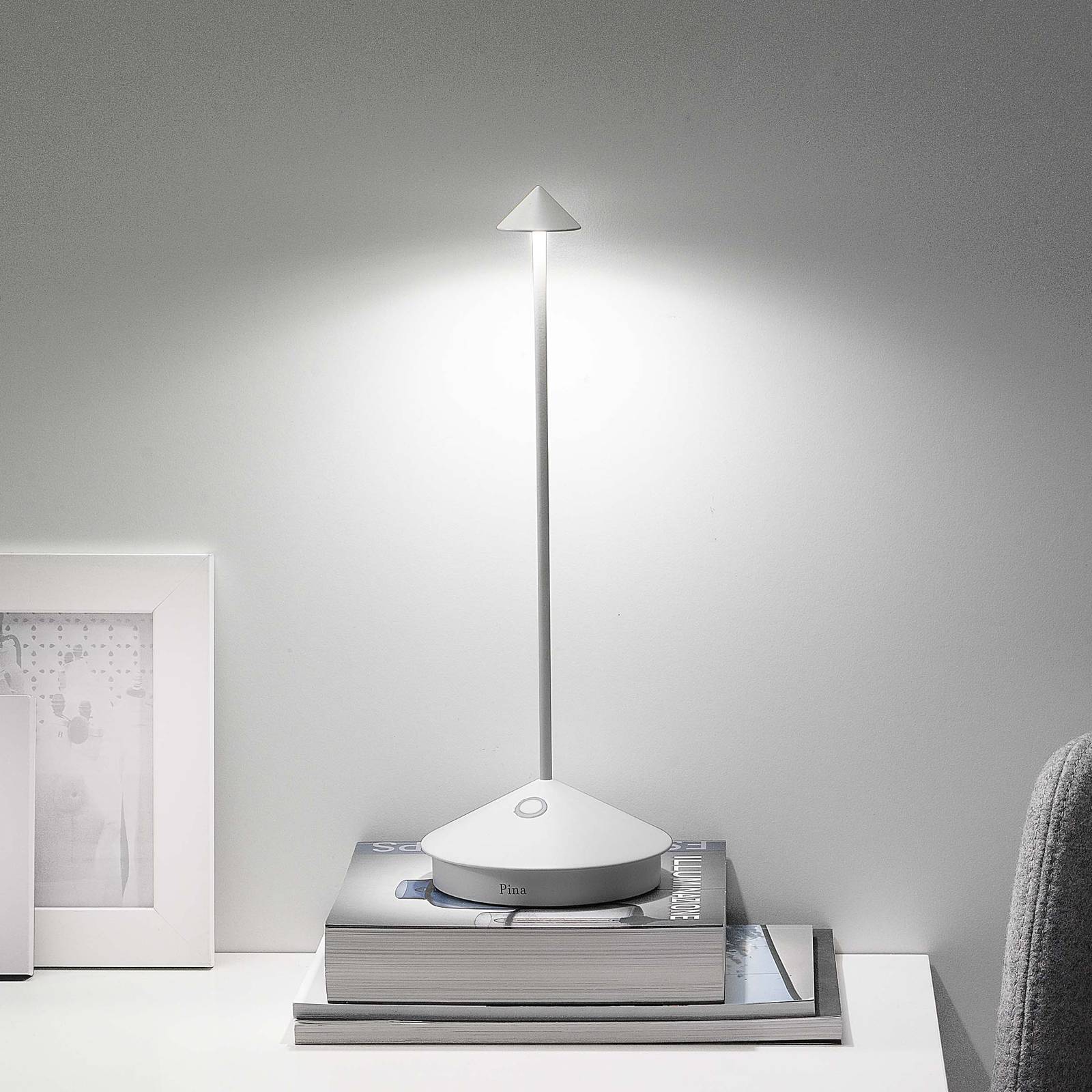 Zafferano Pina 3K dobíjecí stolní lampa IP54 bílá, Obývací pokoj / jídelna, Hliník, polykarbonát, 2W, K: 29cm